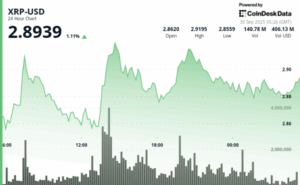 O XRP ganhou 2,1% durante o pregão de 24 horas de 28 de setembro às 21:00 a 29 de setembro às 20:00, subindo de US $ 2,84 para US $ 2,90 enquanto se move dentro de uma faixa de US $ 0,10 que representava 3,47% do preço de abertura.